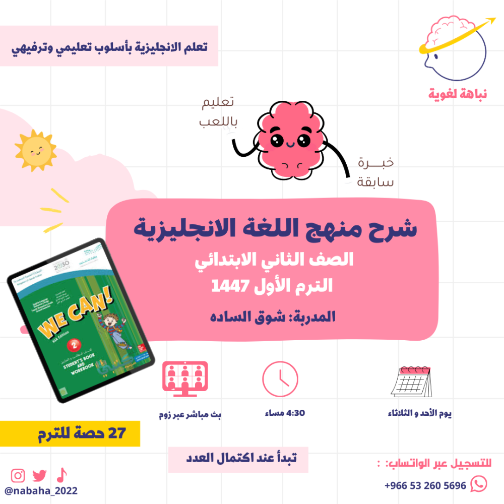 شرح منهج اللغة الانجليزية للصف الثاني الابتدائي -27 حصة خلال الترم بث مباشر